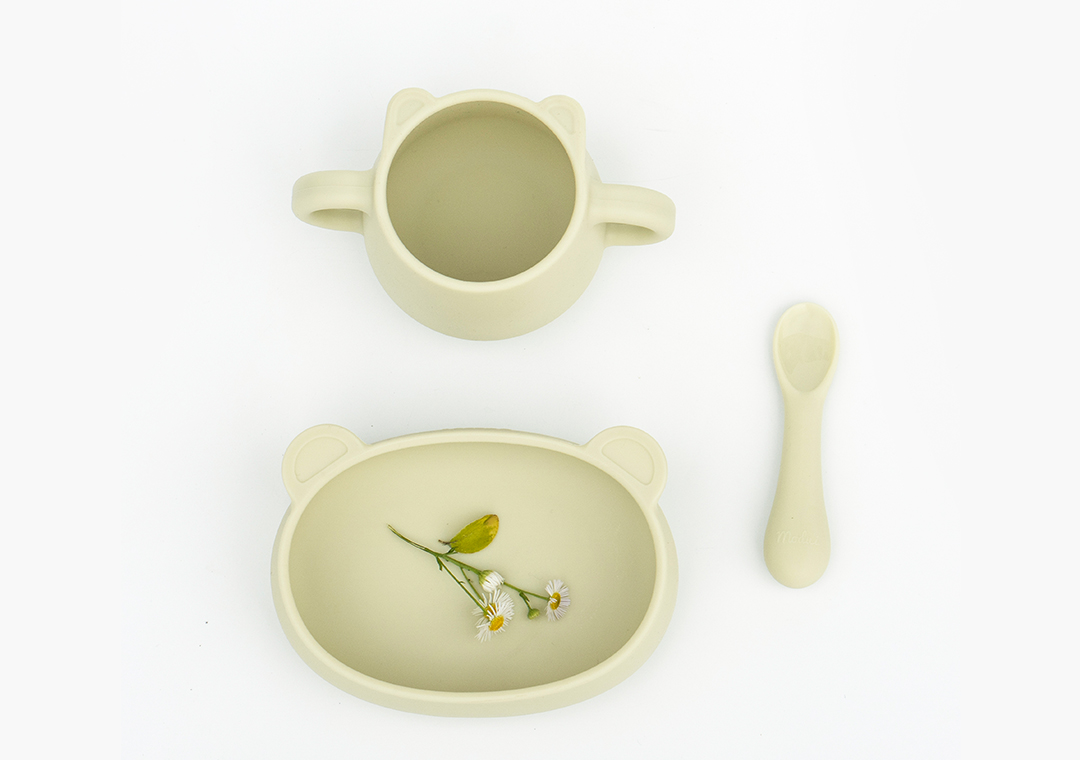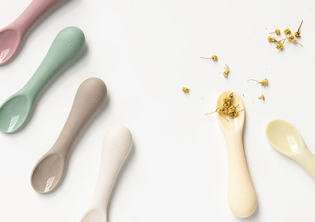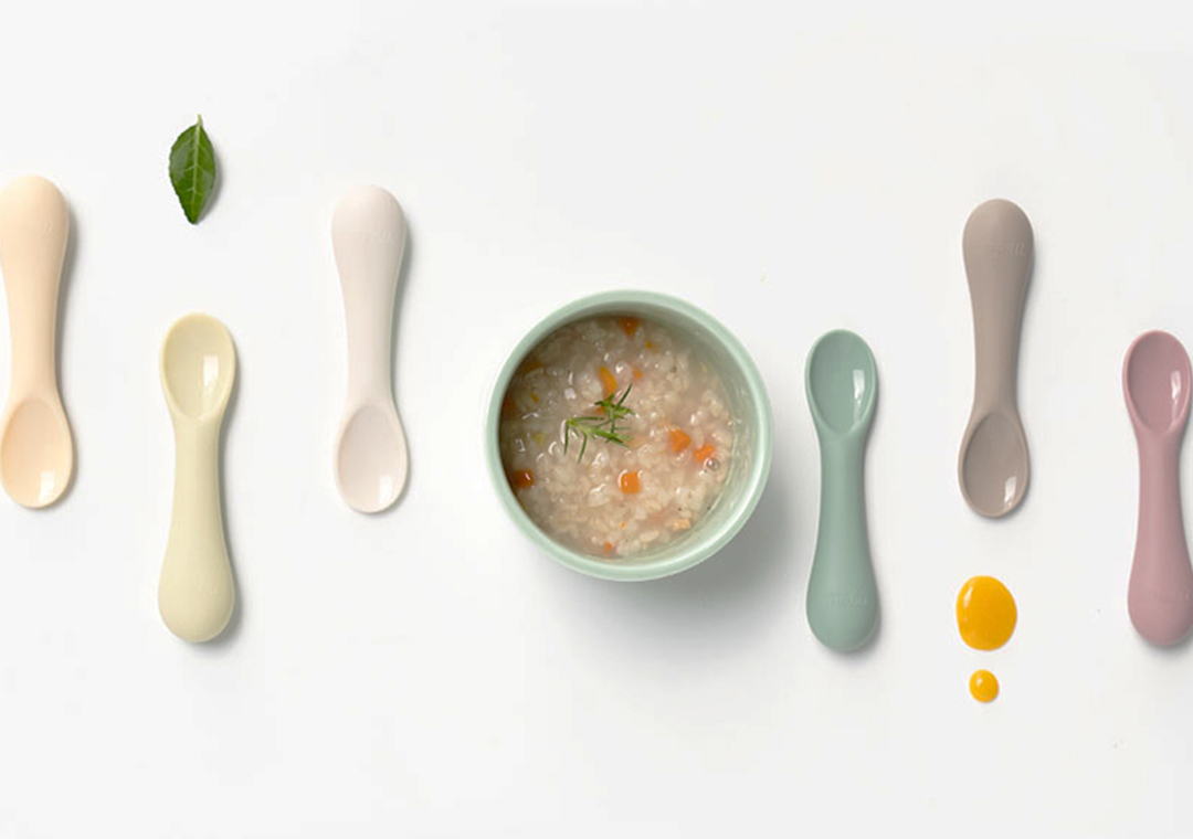 • 以硅胶材质制作的辅食勺子。