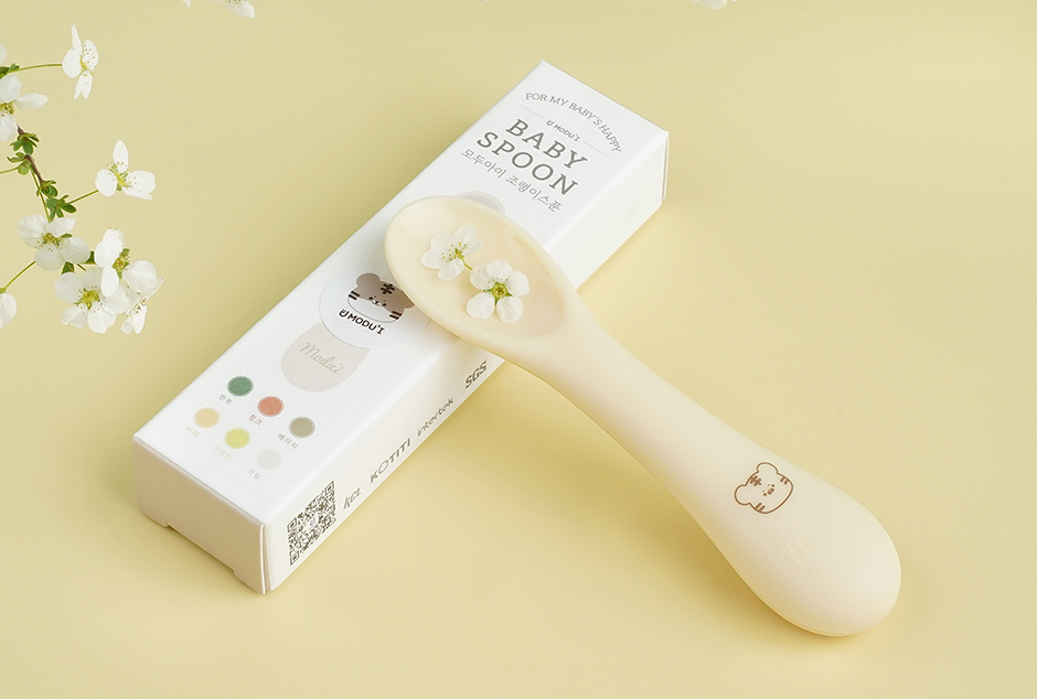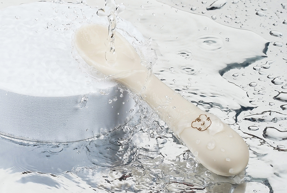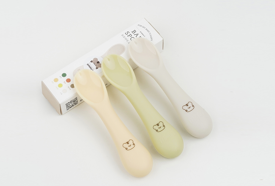 • 以硅胶材质制作的辅食勺子。